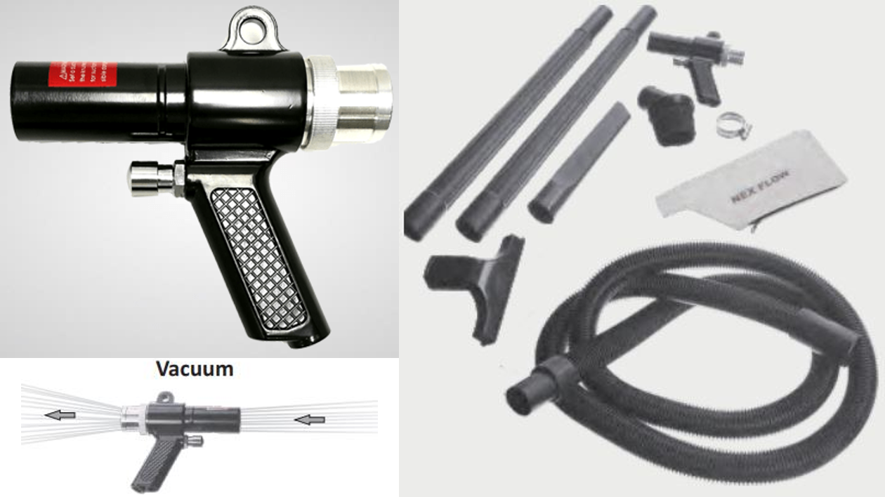 • Tabanca, uzatma aparatları, 3 adet farklı uç, toz toplama haznesi ve hortum ile birlikte set halinde