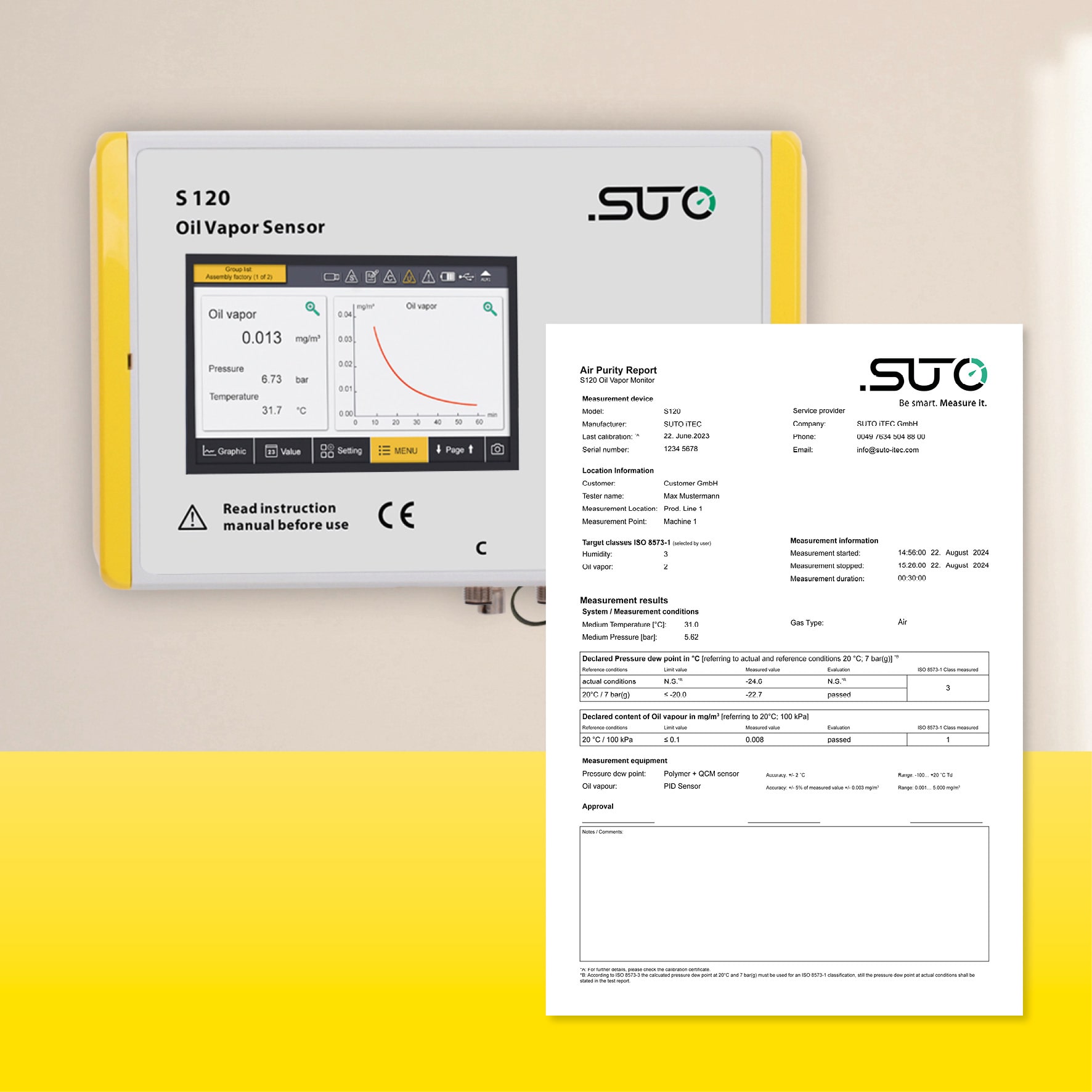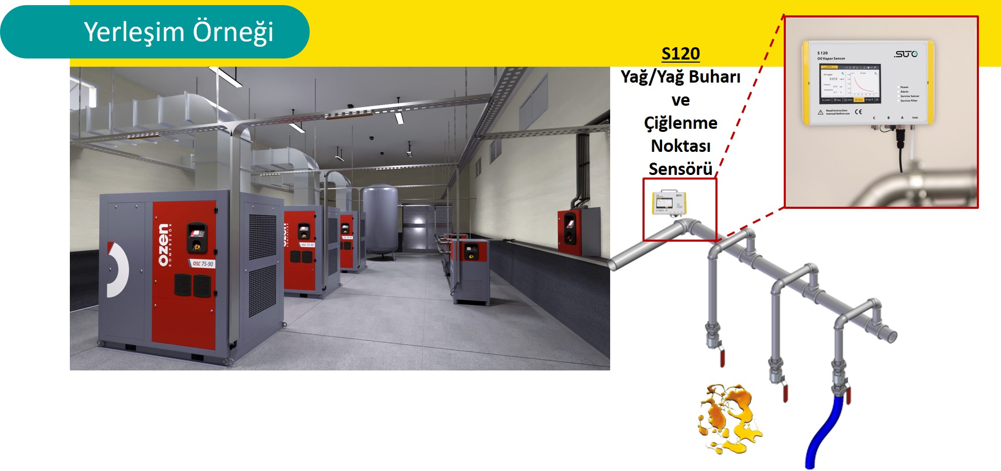 • S120, basınçlı havada bulunan yağ buharını ölçmek, izlemek ve kaydetmek için tasarlanmış son teknoloji yağ buharı sensörüdür.